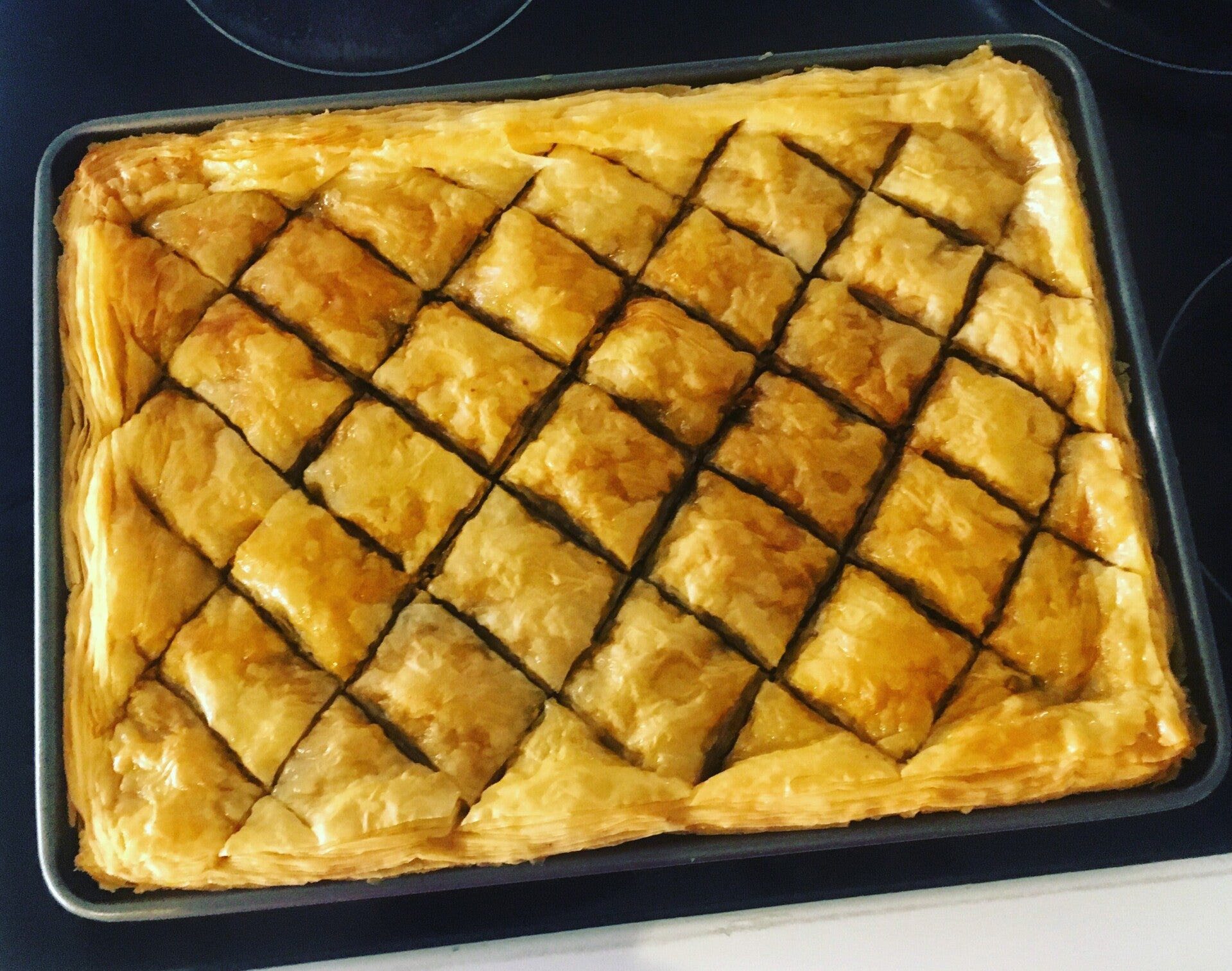 Our Baklava is a traditional family recipe, that is full of walnuts and pistachio's, soaked overnight in a beautiful syrup.